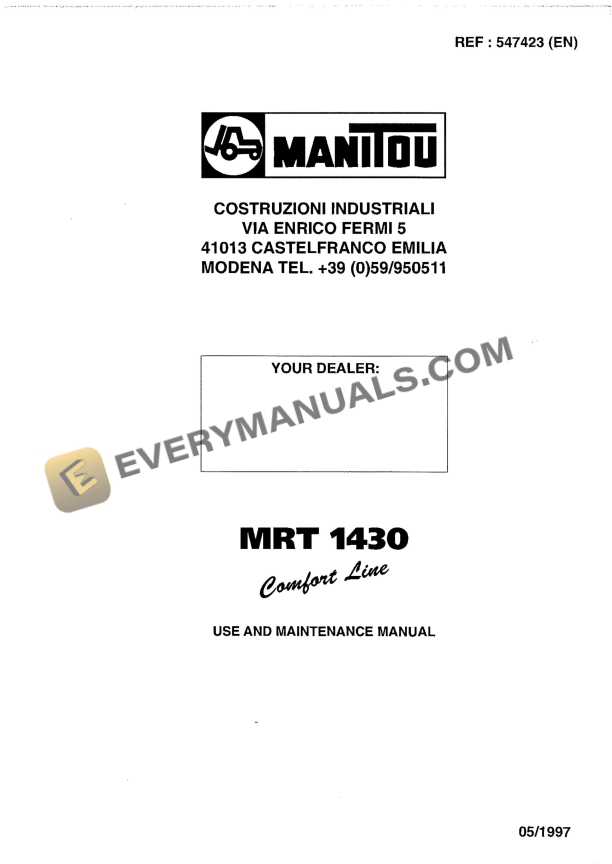 Manitou MRT 1430 Comfort Line Use and Maintenance Manual 547423EN