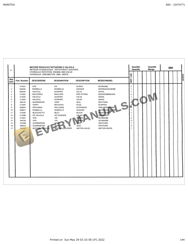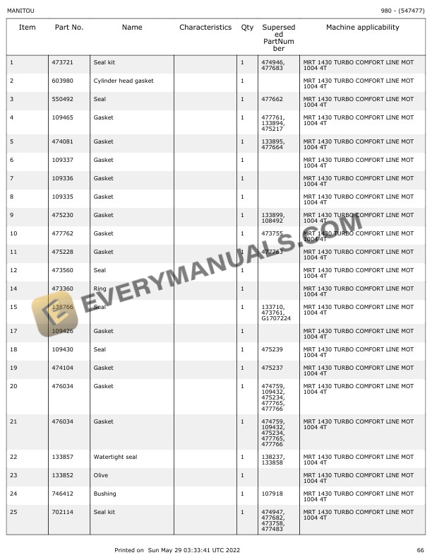 Manitou MRT 1430 Parts Manual 547477