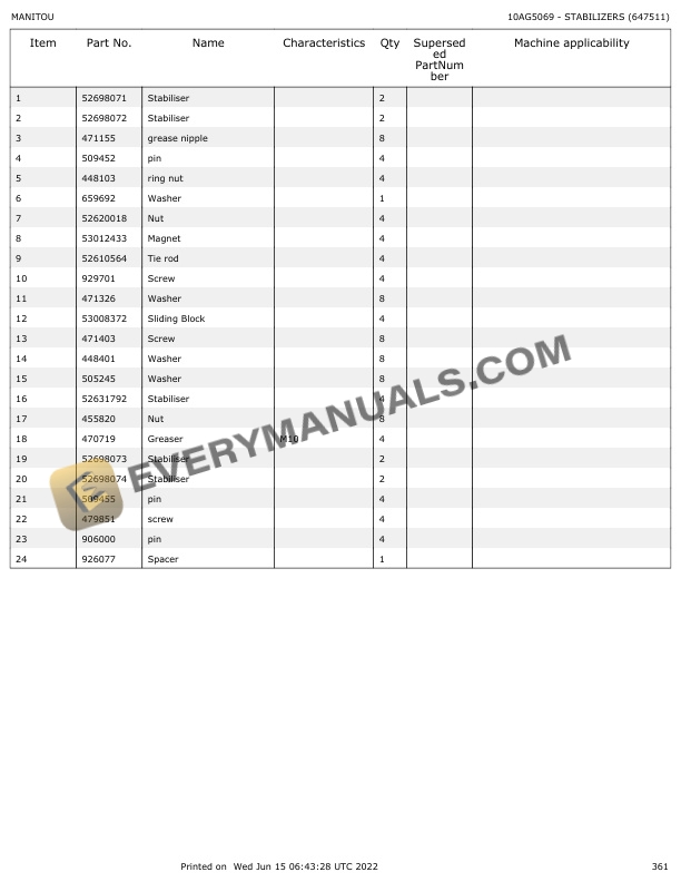 - 8.1. G5069 STABILIZERS (647511)
