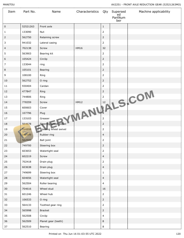- 6.1.6. AX2253 FRONT AXLE STEERING SYSTEM (52521263MO)