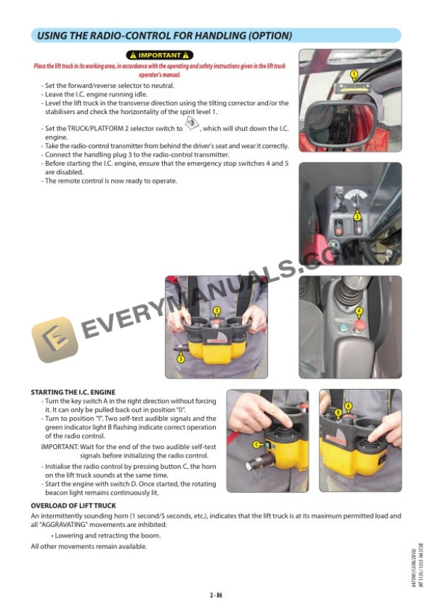 - 2.17. USING THE RADIOCONTROL FOR HANDLING (OPTION)