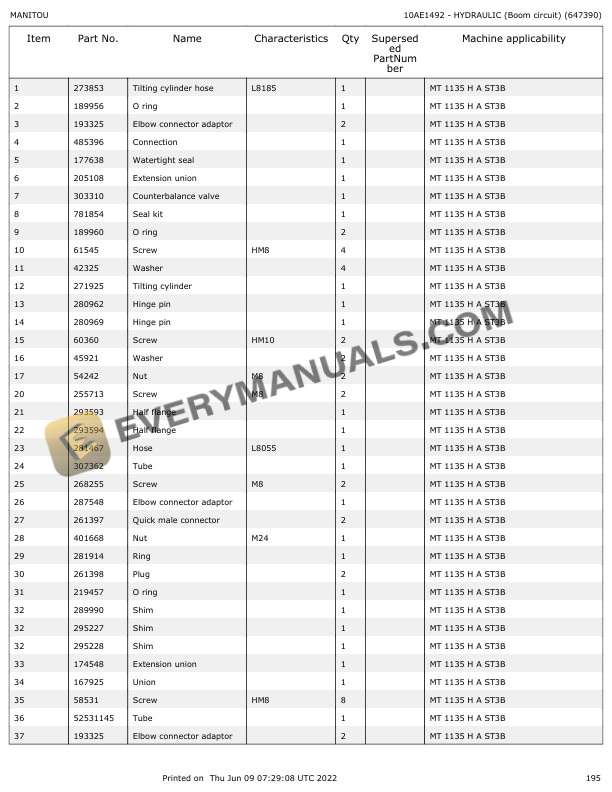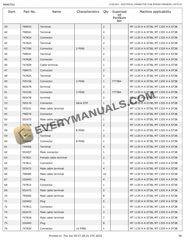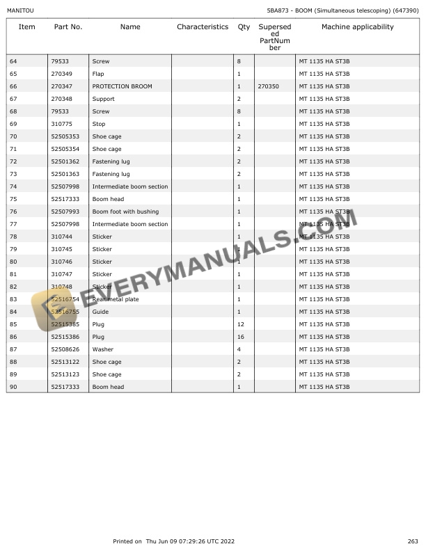 Manitou MT 1135 HA ST3B, MT 1335 HA ST3B Parts Manual 647390