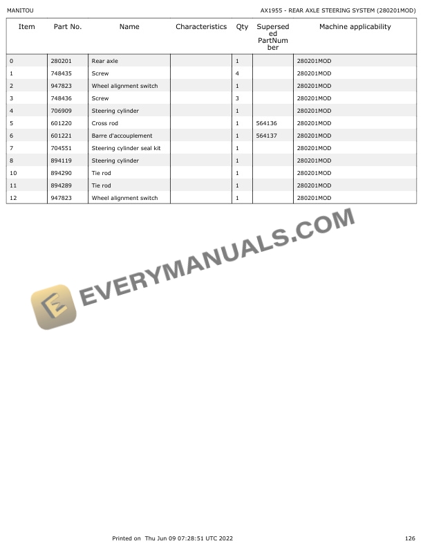 • Type Of Manual: Parts Manual