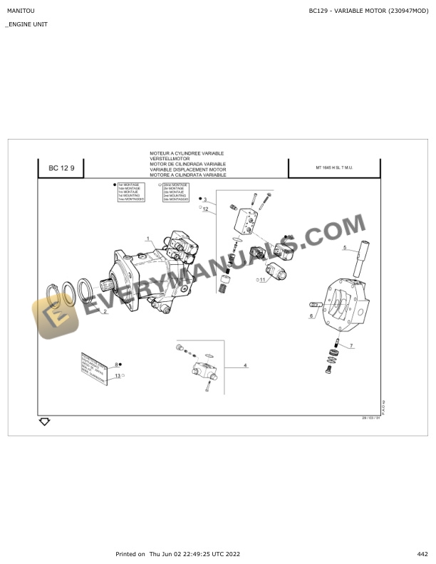 Manitou MT 1235 H S Turbo S.2-E.2, MT 1435 H SL Turbo S.2-E.2, MT 1435 H SL Turbo Ultra S.2-E.2 Parts Manual 547920