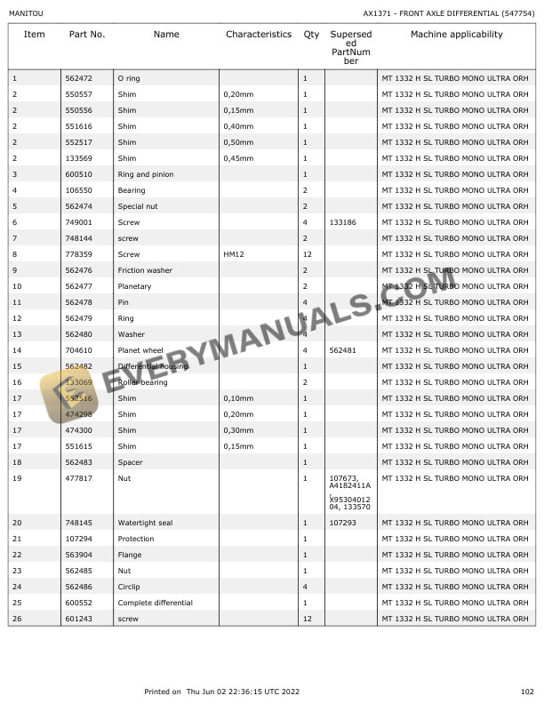 - MT 1332 H SL T M.U. NACELLE ORH