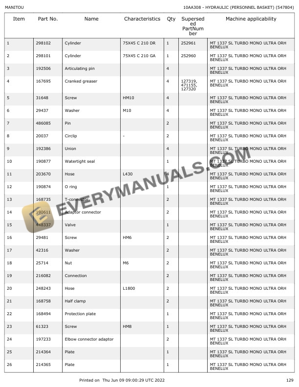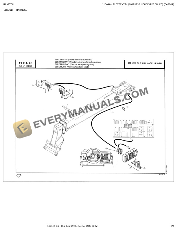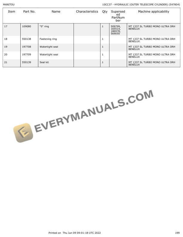 Manitou MT 1337 SL T M.U NACELLE ORH Parts Manual 547804