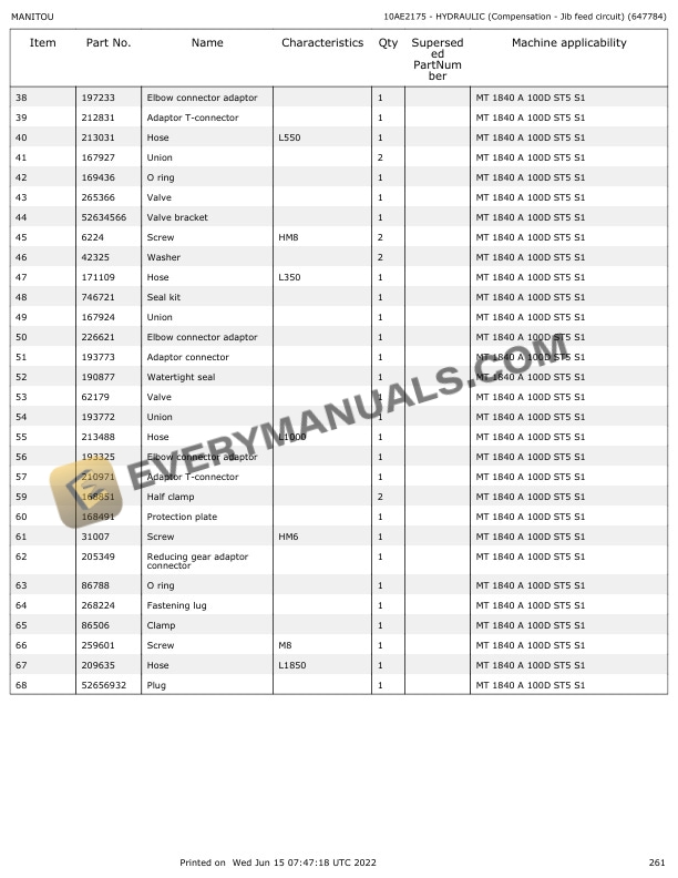 - 8.2. A1222 SEALING KIT ON JIB (647784)