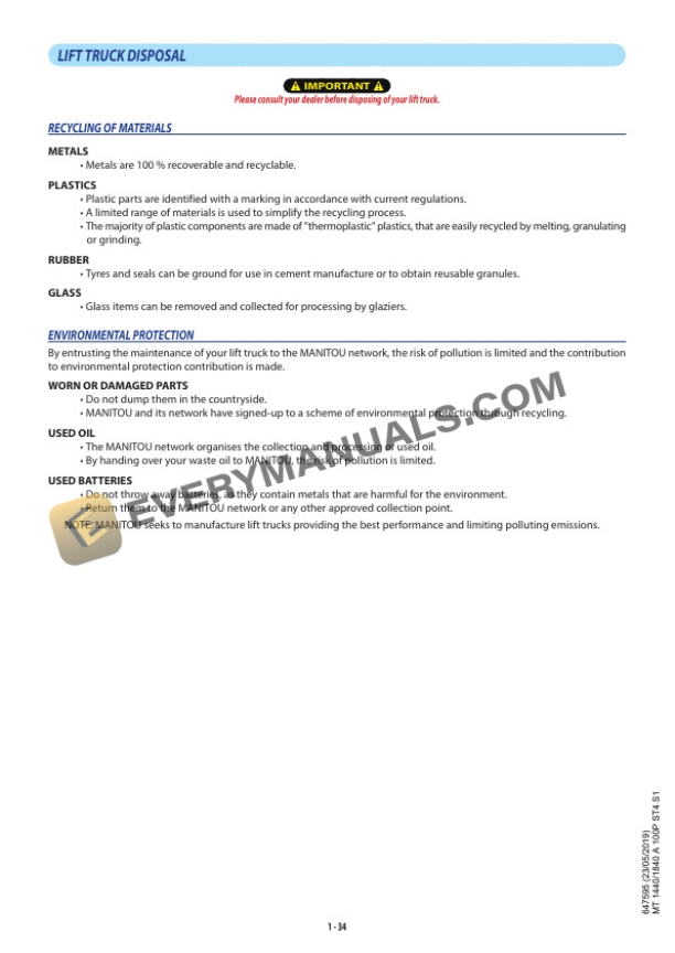 - 3.1. ORIGINAL MANITOU SPARE PARTS AND EQUIPMENT