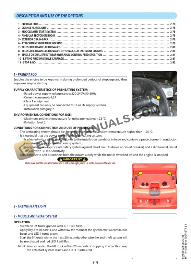 - 1.2.3.5. E STARTING THE LIFT TRUCK