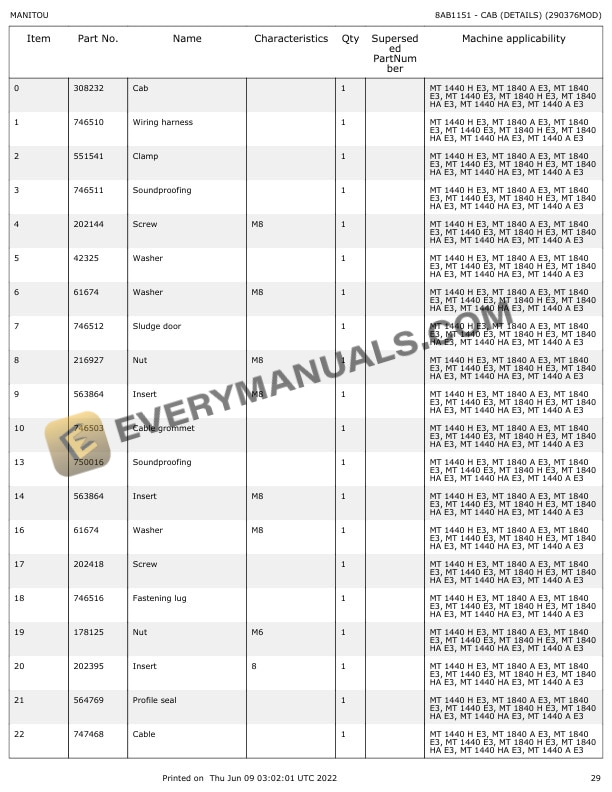- 10.1. B1316 CAB (DETAILS) (290375MOD)