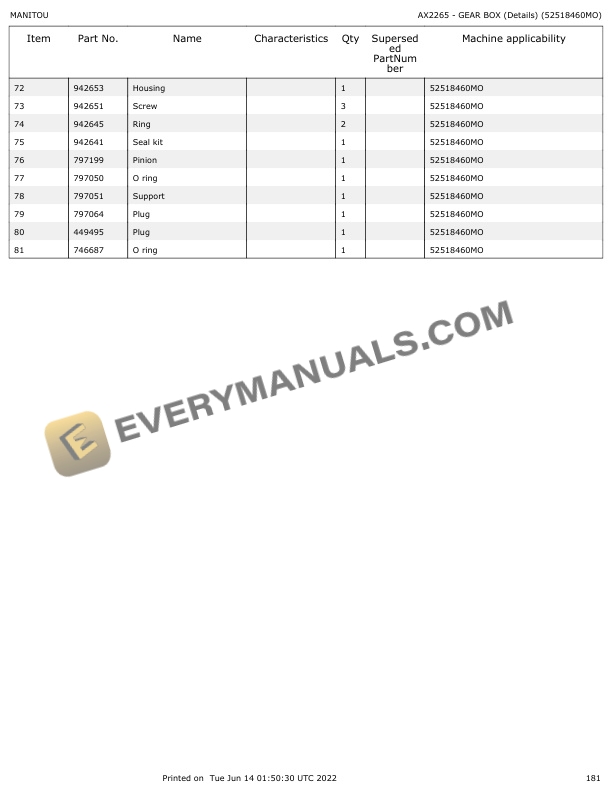 - 8.9. A1218 SEALING KIT ON JIB (647760)