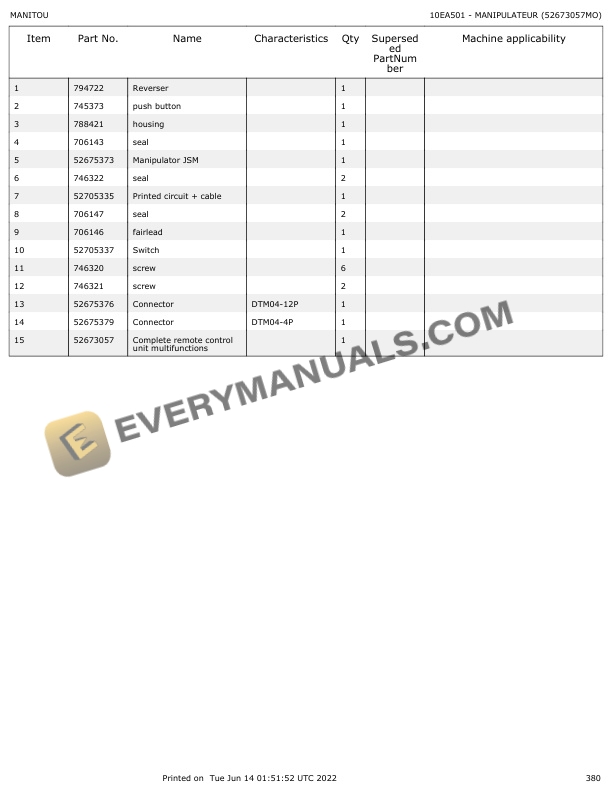 - 8.7. A1216 SEALING KIT ON JIB (647760)