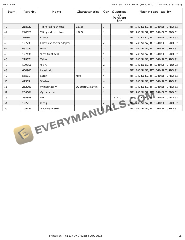 - 5.4.2. E384 HYDRAULIC (JIB CIRCUIT TELESCOPE) (547837)