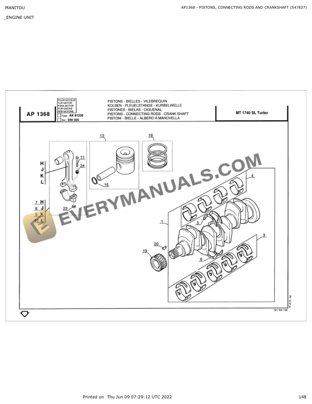 - 7.2.4. AP1368 PISTONS, CONNECTING RODS AND CRANKSHAFT (547837)