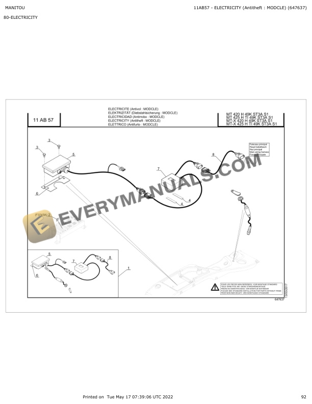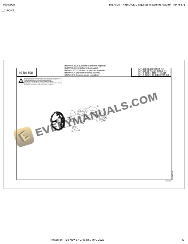 Manitou MT 420 H 49K ST3A S1, MT 425 H TI 49K ST3A S1, MT-X 420 H 49K ST3A S1, MT-X 425 H TI 49K ST3A S1 Parts Manual 647637