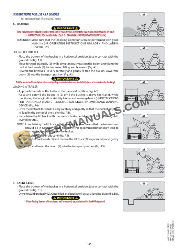 - 1.2.5. INSTRUCTIONS FOR USE AS A LOADER