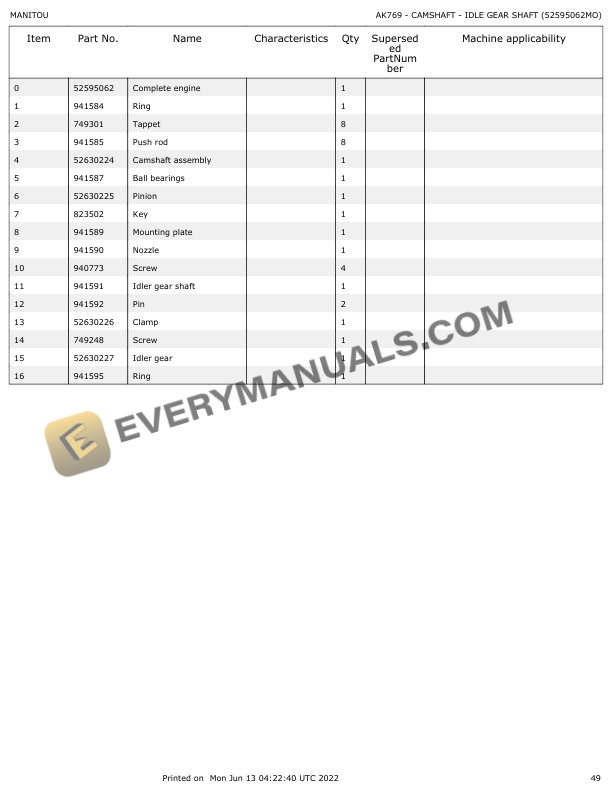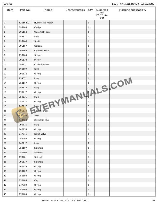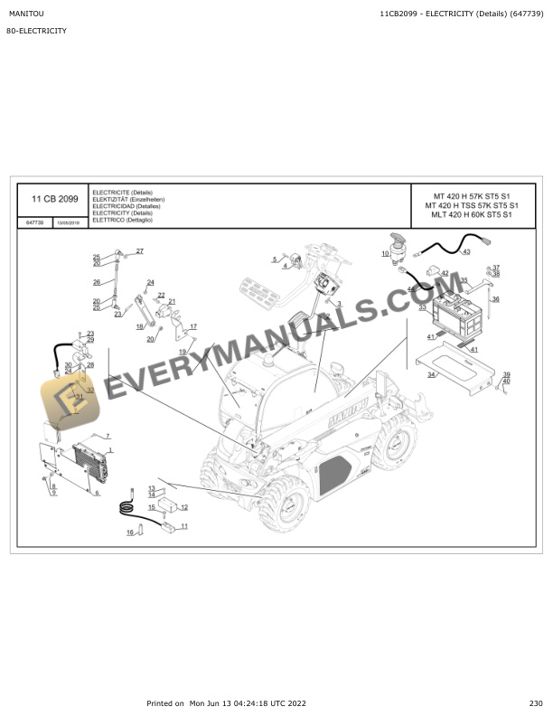 Manitou MT 420 H 57K ST5 S1, MT 420 H TSS 57K ST5 S1 Parts Manual 647739
