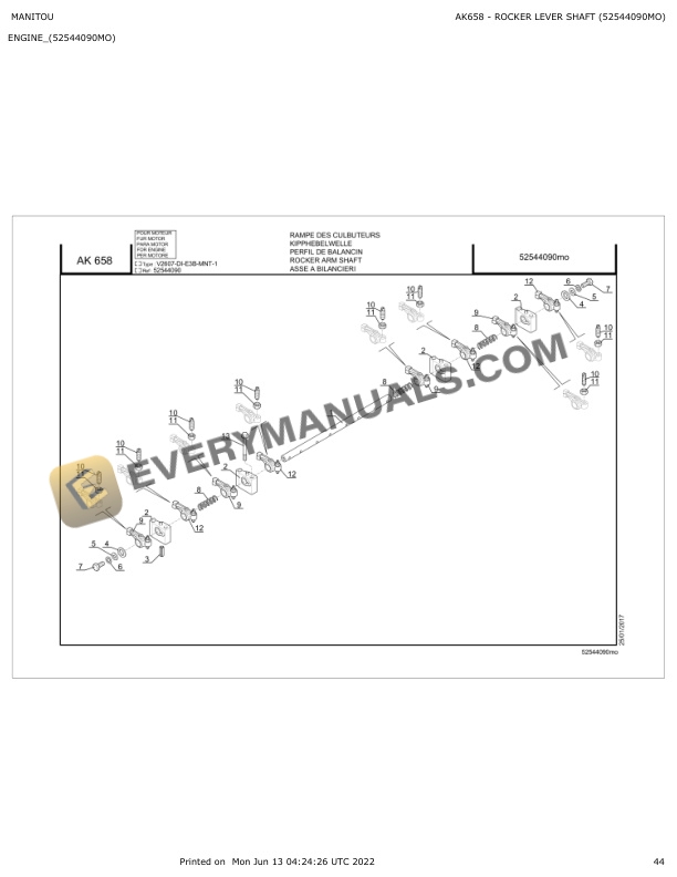 - 4.1.6. AK658 ROCKER LEVER SHAFT (52544090MO)