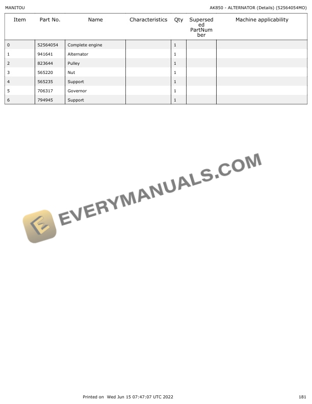 - 8.2.19. AK849 ALTERNATOR (52564054MO)