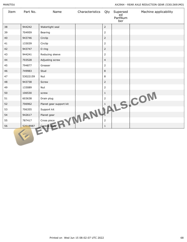 - 6.1.5. AX2959 FRONT AXLE REDUCTION GEAR (53013690MO)