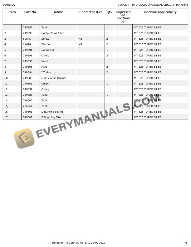 - 6.1.7.2. E956 HYDRAULIC (TELESCOPE CIRCUIT) (647024)