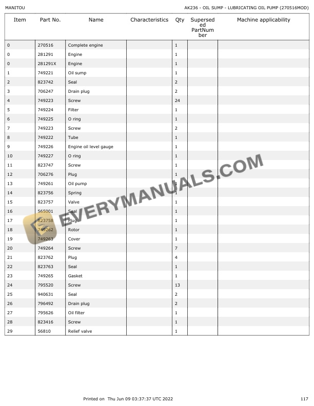 - 8.2.6. AK236 OIL SUMP LUBRICATING OIL PUMP (270516MOD)