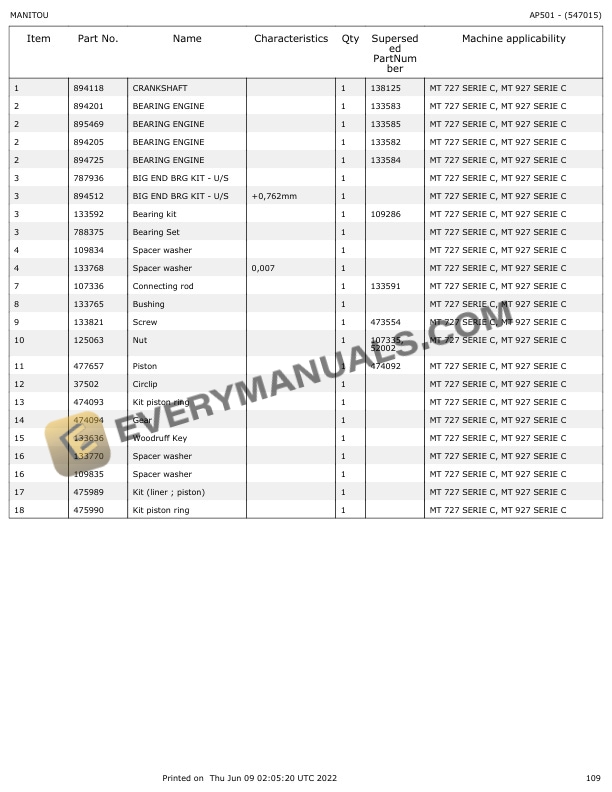 - 8.1.10. AP517 ROCKER LEVER SHAFT (547015)