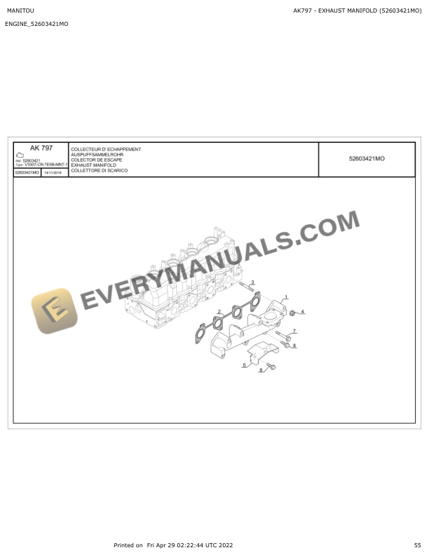 - 4.1.15. AK797 EXHAUST MANIFOLD (52603421MO)