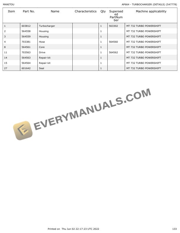 - 7.1. AP664 TURBOCHARGER (DETAILS) (547778)