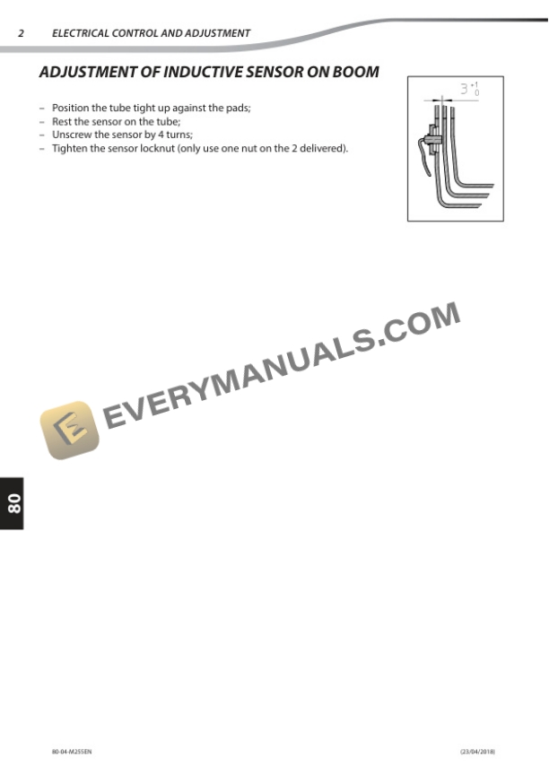 - 10.4.1. ADJUSTMENT OF INDUCTIVE SENSOR ON BOOM