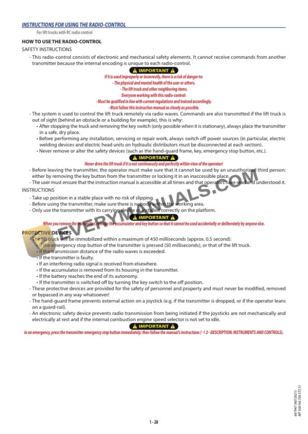 - 1.4.5. PROTECTING THE LIFT TRUCK