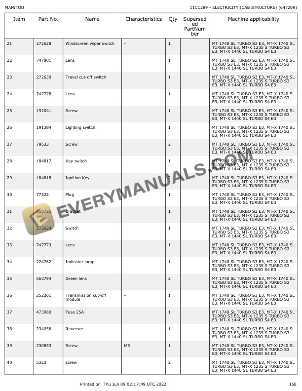 - 5.1.1. C289 ELECTRICITY (CAB STRUCTURE) (647209)