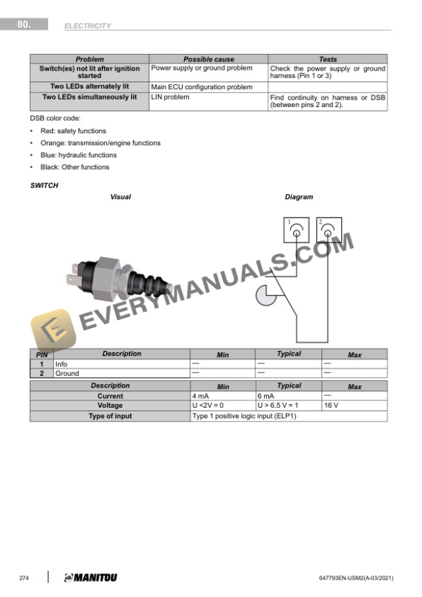Manitou MT-X 1440 100P ST3A S2, MT-X 1440 A 100P ST3A S2, MT-X 1840 100P ST3A S2, MT-X 1840 A 100P ST3A S2 Repair Manual 647793EN-USM2