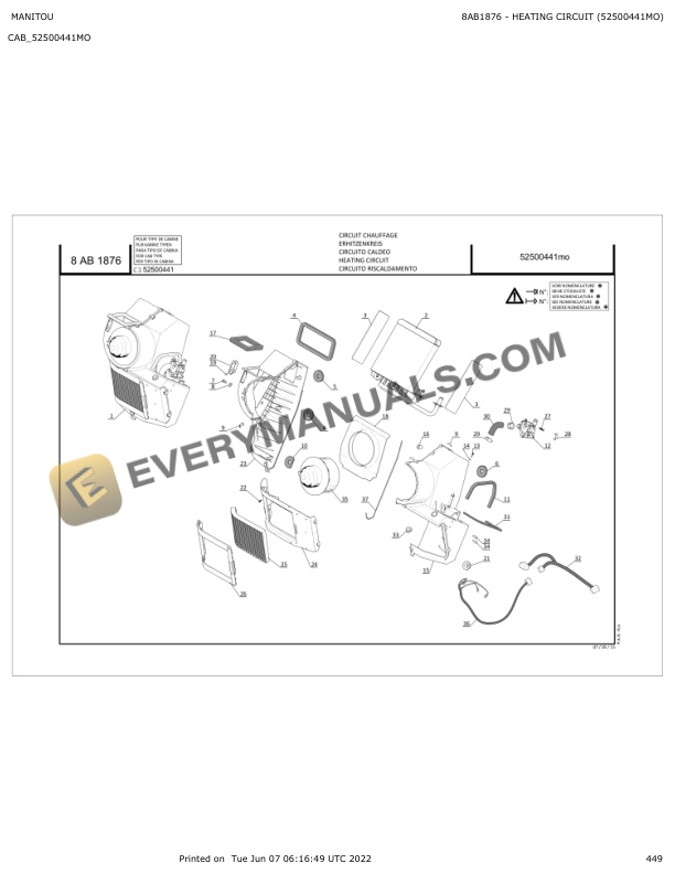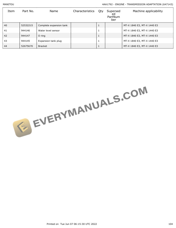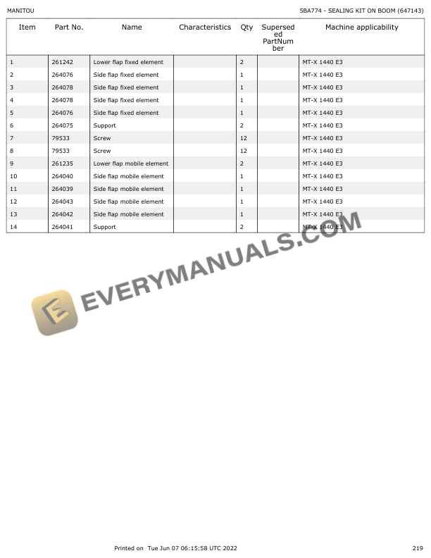 Manitou MT-X 1440 E3, MT-X 1840 E3 Parts Manual 647143