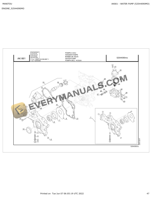 - 4.2.8. AK661 WATER PUMP (52544090MO)