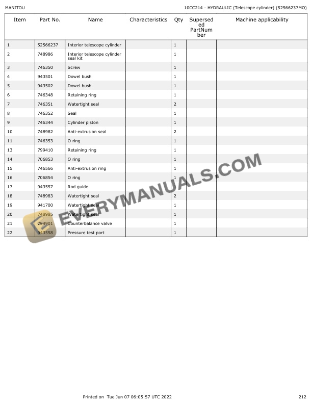 - 9.3.3. C214 HYDRAULIC (Telescope cylinder) (52566237MO)