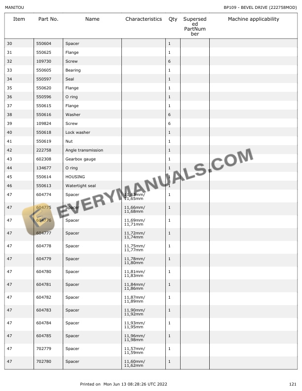 - 5.3.2. BP109 BEVEL DRIVE (222758MOD)