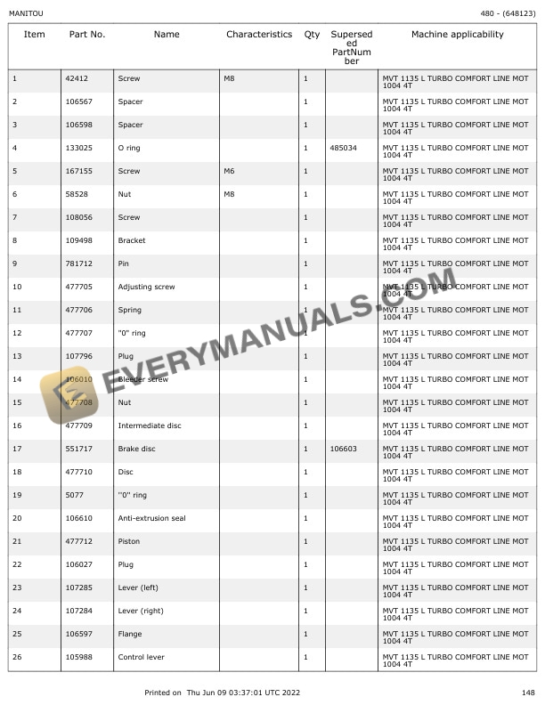 - 4.5.12.1. FILTERS AND BELTS (648123)