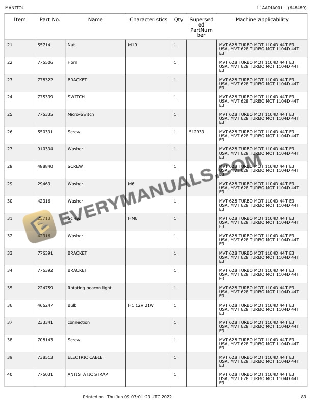 - 2.1. ADI001 FILTERS AND BELTS (648489)