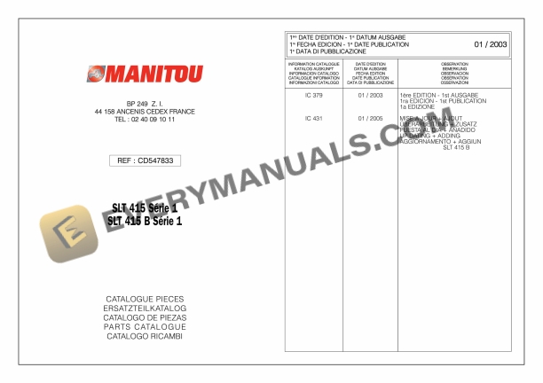 Manitou SLT415 Series 1, SLT415B Series 1 Parts Manual CD547833