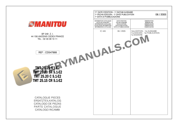 Manitou TMT 25.25 S S.1-E2, TMT 25.20 SR S.1-E2, TMT 25.20 C S.1-E2, TMT 25.15 CR S.1-E2 Parts Manual CD547888