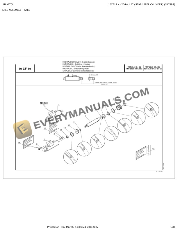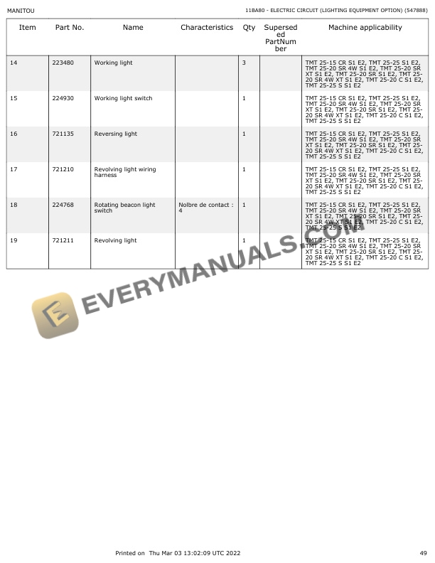 Manitou TMT 25-25 S1-E2 to TMT 25-20 SR4W XT S1-E2 Parts Manual 547888
