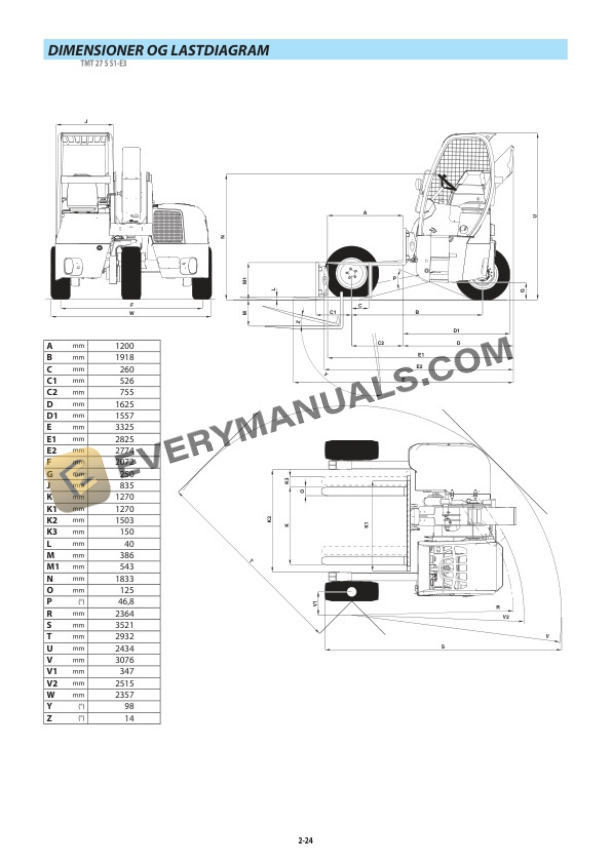 - 3.11. DIMENSIONS ET ABAQUES DE CHARGE TMT 27 S S1E3