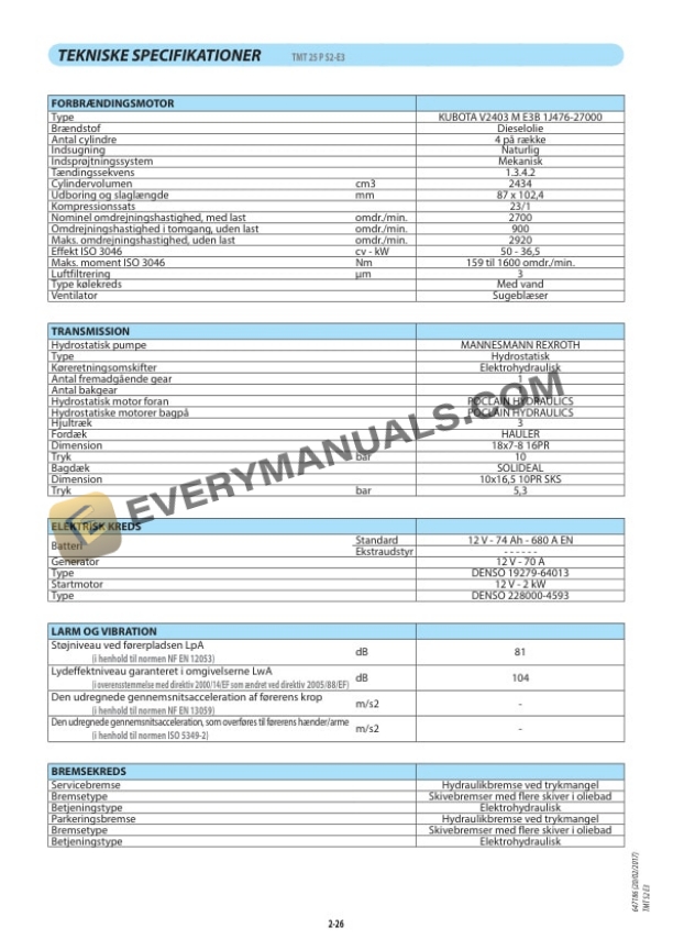 Manitou TMT 25 I Series 2-E3, TMT 25 S Series 2-E3, TMT 27 S Series 2-E3, TMT 27 P Series 2-E3, TMT 25 P Series 2 Operator Manual 647186 DK