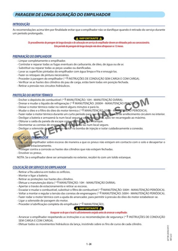 - 1.4. PARAGEM DE LONGA DURAÇÃO DO EMPILHADOR
