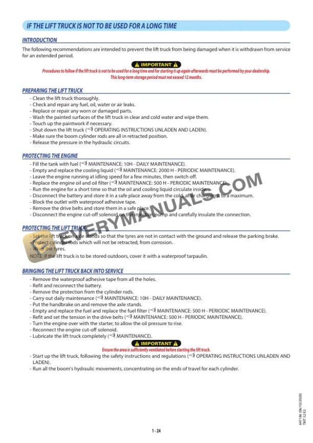 - 1.4.5. BRINGING THE LIFT TRUCK BACK INTO SERVICE