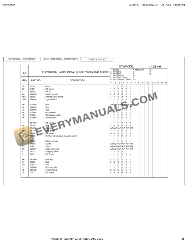 - 4.4.3. A37 ELECTRIC CIRCUIT (LIGHTING EQUIPMENT OPTION) (801646)