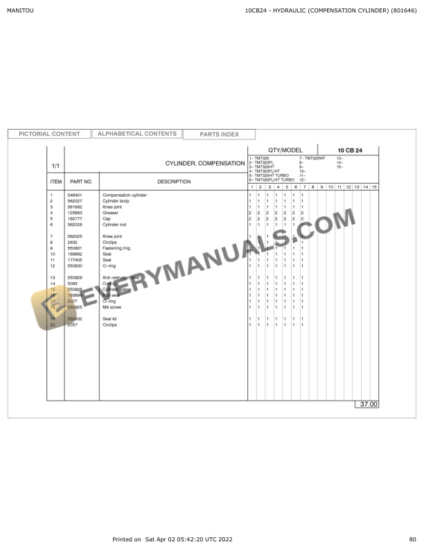 - 5.8. A80 HYDRAULIC (LIFTING CYLINDER) (801646)