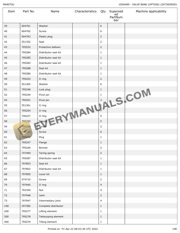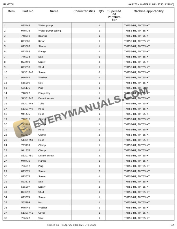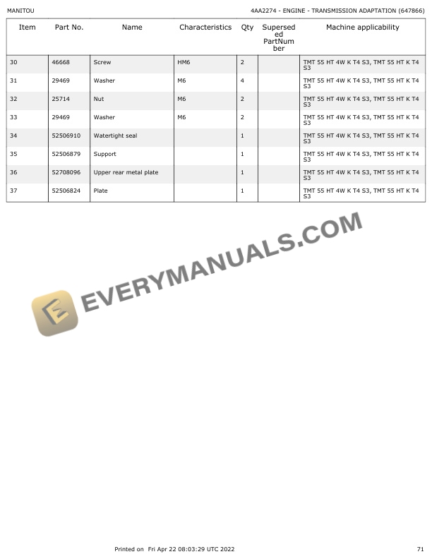 Manitou TMT 55 HT K T4 S3, TMT 55 HT 4W K T4 S3, TMT 55 XT K T4 S3, TMT 55 XT 4W K T4 S3 Parts Manual 647866