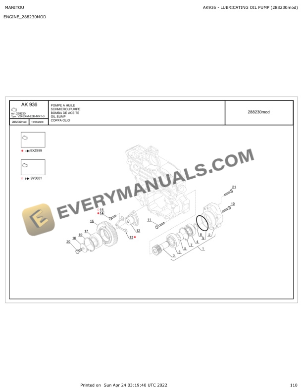 - 10.2.2. AK931 OIL SUMP LUBRICATING OIL PUMP (288230mod)